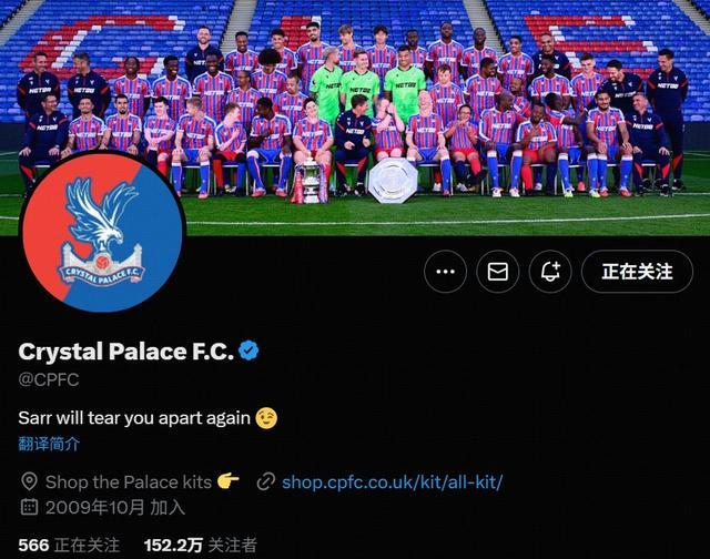 近日,水晶宫的官方社媒更改了简介:萨尔会再次将你们撕成碎片。